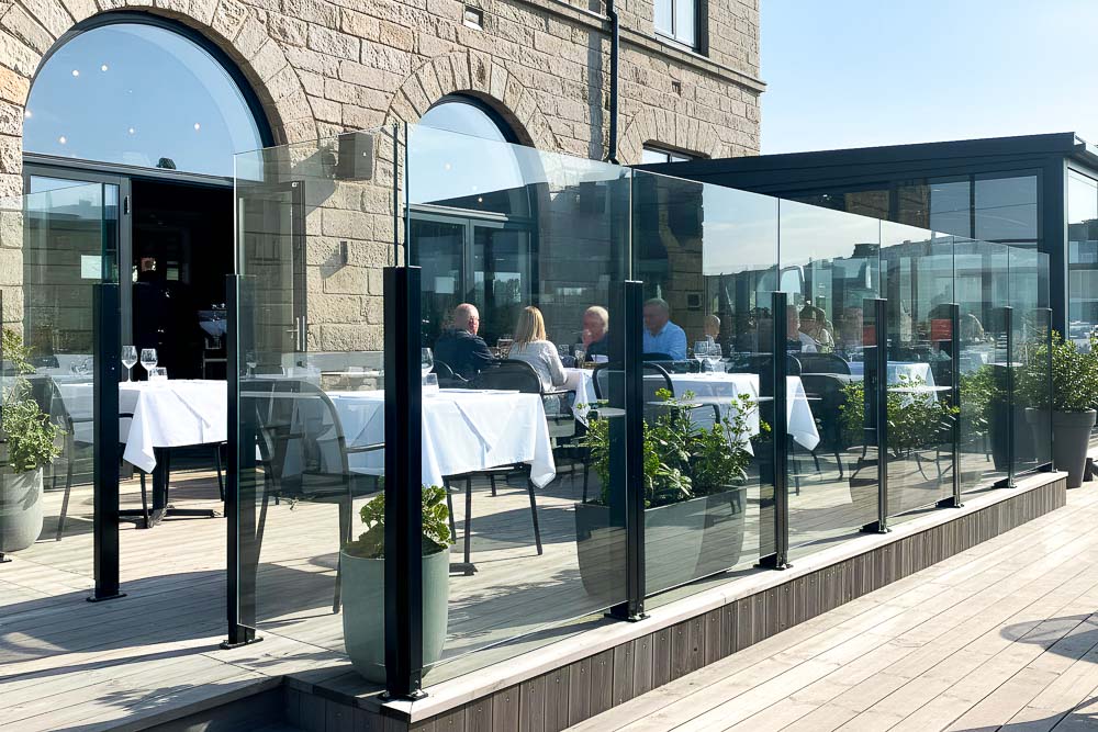 Absolut. Vores glasgelændere anvendes ofte på udeserveringer, hvor vindafskærmning er nødvendig for at skabe et mere komfortabelt miljø. Dermed kan udeserveringen bruges flere dage og over en længere del af året, samtidig med at miljøet forbliver åbent og stilrent.
