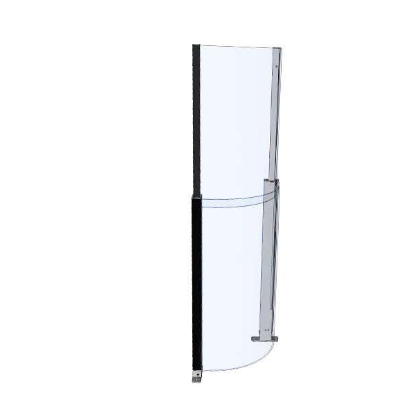 ClickitUpBalconyCurved er 1100 mm i nedsænket position og 1900 mm i hævet position. Produktet er et afrundet hjørne og er tilpasset altaninstallationer.