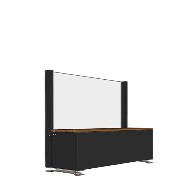 Vindskærm som fritstående sektion ved at kombinere CiUWindscreen med plantekasse eller bænk.